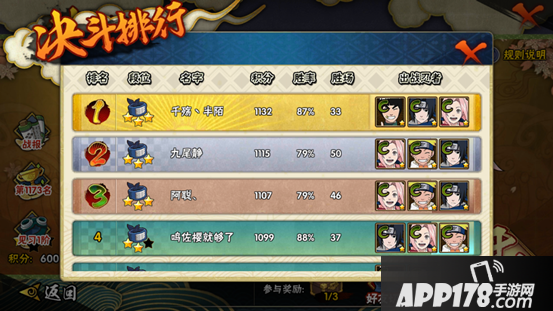 以上就是小编为大家带来的火影忍者手游决斗场最强阵容推荐,更多内容请关注APP178手游火影忍者手游专区!