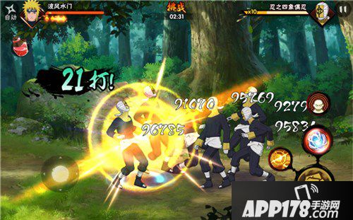 我们再来看看波风水门,波风水门的两个普通技能都拥有着接近大半屏的范围伤害,其奥义技能虽然判定范围不及全屏,但也达到了半屏以上。在技能判定范围方面可以说四代和以往的技能消耗型忍者不分伯仲。另一方面,四代的出手速度快,除了“电光火石”拥有一个短暂的前摇,其余技能和平A都几乎为瞬发,而这一点正是目前主流突进型忍者所独具的特色。