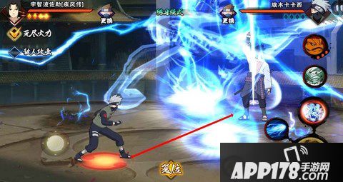 千鸟锐枪:使用查克拉向前方打出雷电,若成功命中敌人,则追加一次空中的雷电长枪贯穿攻击。身后约有接近一个身位的攻击判定距离,在身后打出伤害判定后是不会有第二段动作的。技能X轴范围几乎为全屏,( 注:极限距离不会追加第二次攻击,一定要注意 ) 技能伤害高,CD为10秒,前摇较短。