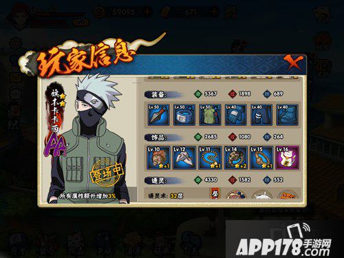 那么最后我们来看看排行版上的最强忍者的装备吧,全蓝是肯定的,大家一起努力吧!