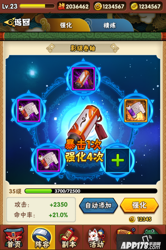 APP178手游网>火影忍者-忍者大师>游戏攻略>火影忍者-忍者大师装备系统简介-宝物简介
