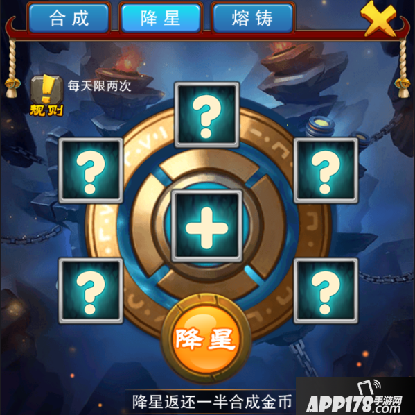 降星是需要VIP2以上的,每天只有2次的!而且只返还一半的合成金币!大家注意一下哦!
