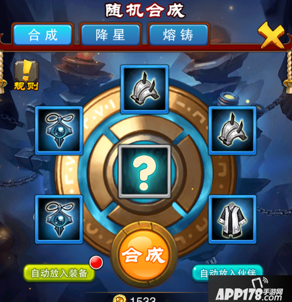 ①合成需要消耗5个同星级材料,伙伴和装备不能混合使用