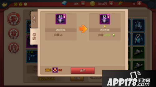 此外,“强化”和“进阶”都可以提升装备的基础属性。
