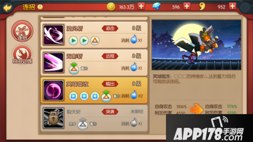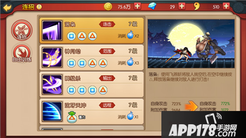 技能1:落枭,将敌人挑空后在空中对敌人进行连击,造成多次伤害。消耗两点灵力。
