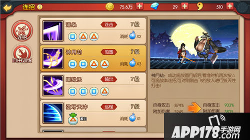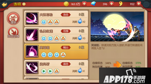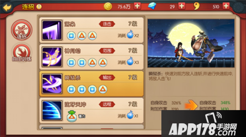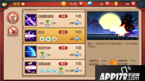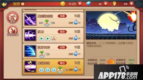 技能3:瞬狱杀,迅速向前连续斩击,最后一击将敌人击飞。不消耗灵力。
