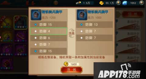 系统会自动选择当前装备中属性最差的项目进行洗练。就例如下图,游戏会随机在防御13、7、7三条属性中选择一条换到左侧防御4的项目。
