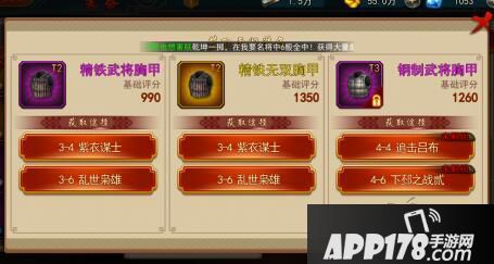 图中有一个“更好装备”的按钮,点击“更好装备”可以显示出更好的装备和获得这些装备的方法。