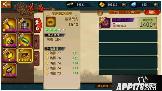 主公可以消耗精铁和金币强化全身所有装备
