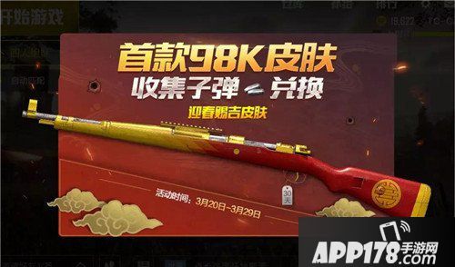 玩家需要参加98K皮肤兑换活动,在3.20-3.29期间,收集10颗银色子弹就能够兑换Kar98K迎春赐吉(30天)。虽然只能兑换30天皮肤,但是对于皮肤本身就稀少的98K来说已经很多不错。
