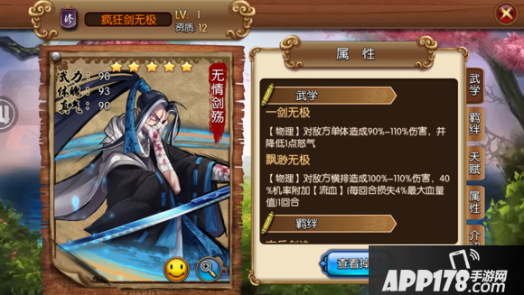 武学特性:怒技全体伤害附加25%流血,25%几率怎么会这么低,这符合还珠副楼主的身份么。