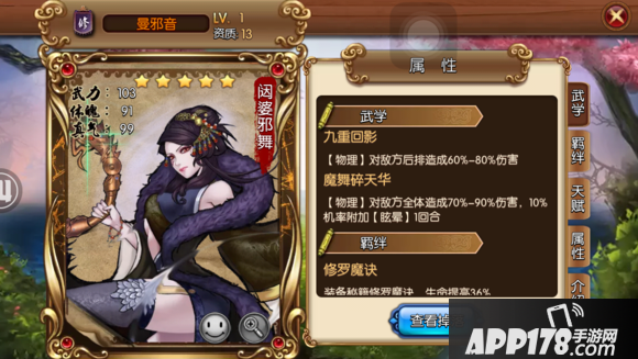评语:黑白郎君恶体,配合幽灵魔刀能相当于激活两个羁绊,各属性都不差,有防能攻,战力强,能配合网中人,黑白郎君激活羁绊,很好用的13资质武将。