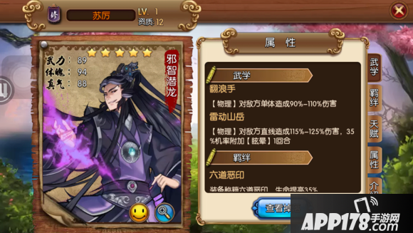 评语:甲子名帖第一邪,强攻型的13资质英雄,防御方面也有兼顾,非常不错的英雄,而且也比较好拿,二天60万战力包可以拿到。