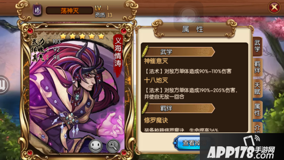 评语:魔世三尊和荡神灭地位同等的输出型英雄,放在后排也可以接受好兄弟的保护的,还能激活羁绊。