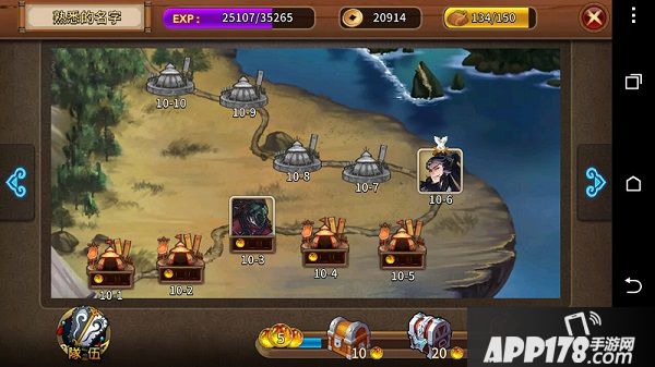 ▲章节里会再细分关卡及难度,通常最后一个关卡会掉落不错的角色碎片,元宝够多的话
