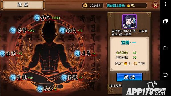 ▲主角的升级方式和其它队友不同,主要是靠剧情关卡的灵珠打通经脉,进而提升战力和星等。