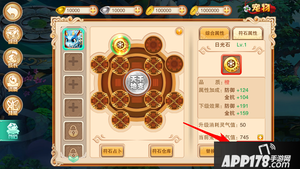 符石升级需要消耗宠物灵气值,随着符石等级与品级的上升,所需的灵气值也会增加,符石最多可以提升到12级。