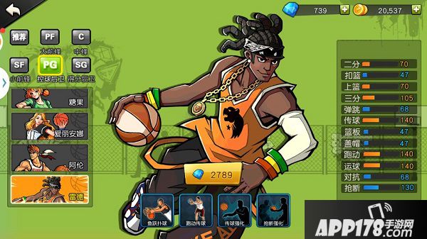 4、 运球强化、抢断强化、传球强化:三个被动技能用于全民辅助PG自身属性的成长,只为最大限度的增强团队大脑的能力