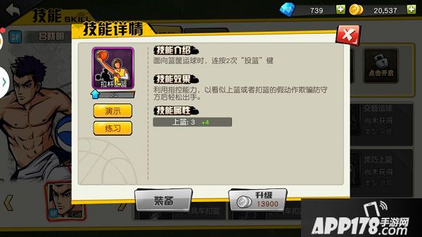 4、 灵巧上篮:虽然有了拉杆上篮,但是还是需要其他技能做配合,灵巧+拉杆的组合,如果对面防守不是很给力的话,那整场比赛势必有你来主导了。