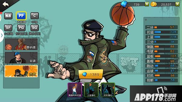 如下图:大前锋的属性中较为突出的数值包含:扣篮、上篮、篮板。扣篮和上篮的优秀数值首先保障了pf的得分能力,其次,仅次于中锋的篮板属性也给pf提供了保护篮板的能力,凸显你内线球员的地位。