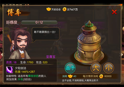前期的伙伴就是沙悟净,沙师弟果然是跟随主角的好手,虽然能力不足,但绝对忠心,前期玩家必备。当然如果你已经有至尊宝,则可以放弃,毕竟至尊宝还有附加升攻的效果,相比沙师弟单纯的追击降攻明显有所提升。这边小囧并不推荐百眼魔君,毕竟不是那么出名的人物,虽然比至尊宝伤害有所提升,但并不明显,附加效果也只有一个,成本来说还是不划算。