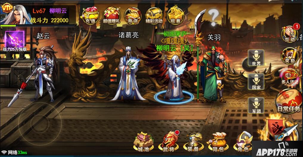 招募到的武将,和主角一样,需要通过装备强化、精炼和镶嵌等进行战力提升。提升武将战力能够大幅度提升玩家的战力,给主角带来直接的战力和属性提升。
