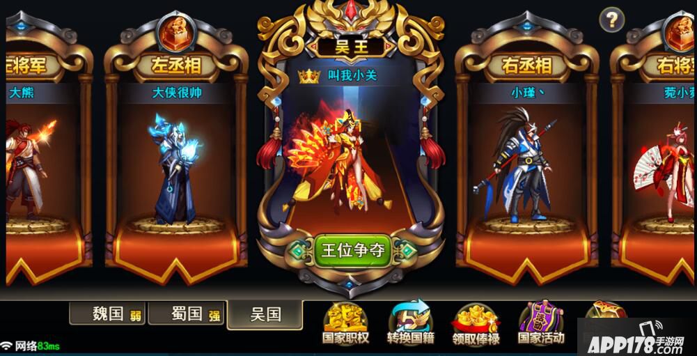 此外,游戏的社交互动玩法也相当丰富。结合三国特色背景,游戏中各阵营还设有国家机构,国王、丞相应有尽有。