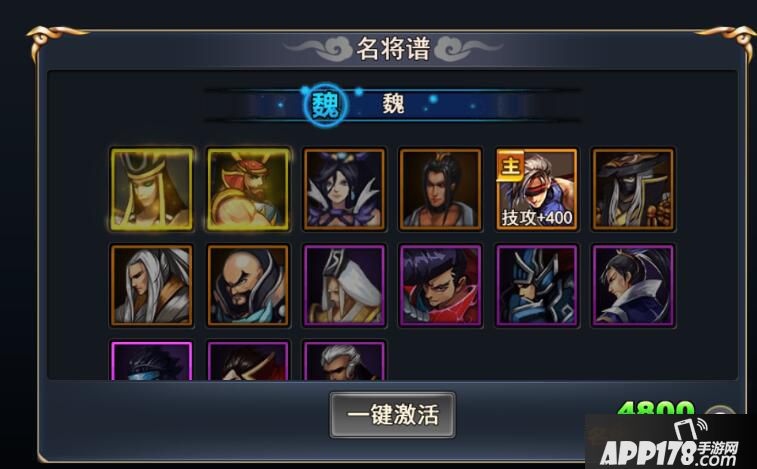 达到一定等级的玩家可以携带4名主将。通过特定的两到三名武将的组合,可以激活缘分特效带来额外的增益效果。