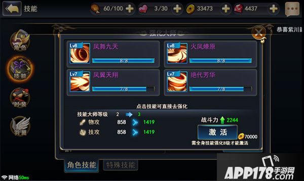 和装备一样,技能也是有技能大师的,当所有技能达到了一定等级后,就能从技能大师手上提升等级,增加战力,但是和装备不一样的是,技能大师提供的战力不会下降。