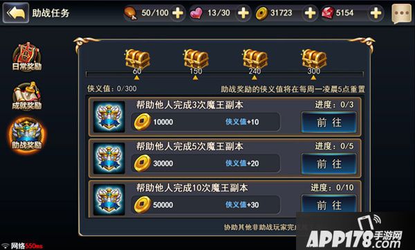 除了日常奖励,还有一个鼓励主公多多组队打魔王本的助战奖励,助战奖励虽然只有大量金钱,但是只要在完成魔王塔日常的时候和各种各样的人组队就可以获得了,每天奖励一共有9万金钱!因此主公前往魔王塔的时候,记得一定要组队前往!
