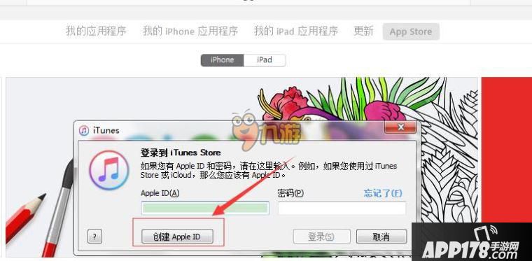 4、因为我们还没有港服账号,因此需要点击弹窗左下角的【创建Apple ID】;