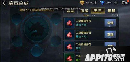 宝石的合成:这个玩法很简单,我们只需要拥有一定量的宝石碎片或者同等级的宝石都是能够合成高品阶的宝石,但是这样的合成是随机的,合成所得到的属性我们是不可估计的。