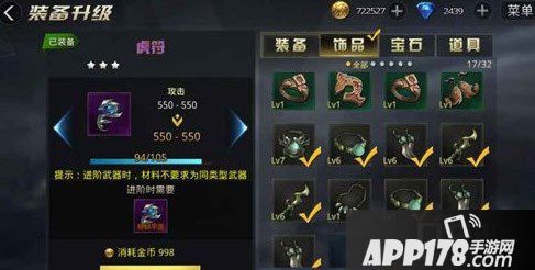1、在游戏中我们在刷副本中经常能够遇到低阶的装备奖励,但是这样的奖励是低我们这边最低要求,那么我们不处理掉是占据我们的仓库体积的,这样就会让我们在后期刷图的过程中遇到麻烦,而作为升级材料处理掉是最常见的方法,这样不单单能够神级高阶装备还能清理空间。