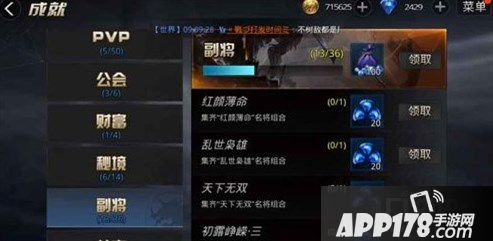 成就玩法:首先目前在游戏中我们可以获得成就数量最大是218,主要分为关卡、角色、PVP、公会、财富、秘境、副将、社交8大部分,每个部分都是各自的子成就的,每个成就给我们带来的钻石收益也是不一样的。