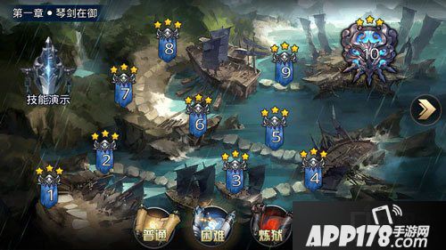 冒险闯关共有六大章节,目前开放了五个章节,每个章节有十个关卡,关卡难度分为普通、困难和炼狱,一般新手玩家只刷普通就可以,困难模式建议至少通关前两章再回来刷,不然可能会死的很惨,炼狱模式比困难模式更加变态。