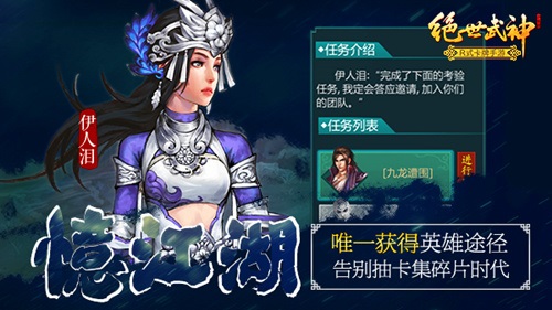 挥泪告别了科比退役,告别有你陪伴的青春,他结束了自己球场生涯的最后一战,这个夏天谁能再续辉煌?对于我们而言,科比的球场人生或许不尽人意,那么游戏人生千万不可错过,首款R式卡牌《绝世武神》手游今日14时正式开启安卓首测!此前《绝世武神》手游在各大媒体平台及官方渠道开放首测预约通道,短短一周时间便收到15万的预约信息,今日更已突破30万预约大关! 十年藏风不出声,一朝出鞘动鬼神。《绝世武神》手游诚邀广大玩家共襄盛举,走进这款备受瞩目的R式卡牌手游,带你穿越回到那个充满无限可能与惊奇的玄幻武侠时代!