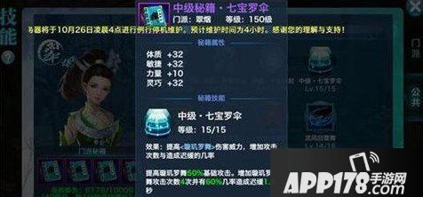 相比之下,中级秘籍·七宝罗伞不仅仅进一步提高了璇玑罗舞的伤害输出,而且还提高了造成迟缓的几率和时间。翠烟是一个很依赖技能来输出和控制的职业。对控制的提升,无疑是让翠烟的风筝能力得到加强。而且璇玑罗舞拥有击退的效果,也是翠烟的核心保命技能之一,技能命中也不难,预判对手的方向就好。中级秘籍·七宝罗伞建议第二个进阶。