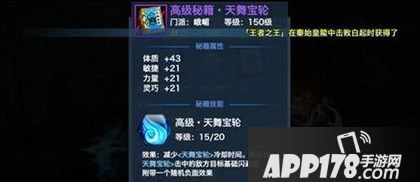 15级的六道轮回减少5秒的冷却时间,降低0%基础闪避值,100%几率造成虚弱、混乱、沉默、迟缓或冰冻,持续3秒。<天舞宝轮>正是因为这个秘籍才成为神级技能,峨眉也是因为这本秘籍让峨眉在前期表现的不错,可以说峨眉跟这个秘籍是“一荣俱荣一损俱损”。15级的六道轮回减少5秒的冷却时间,减少5秒对峨眉来说,释放一次技能只要25秒,这5秒意义非凡。团战的时候,每个放一个技能对团队贡献都是非常大的。原本300秒只能放10个现在能多放两个。想想能增加多少输出,多少血。又能为团队争取了多少输出环境。其次高级秘籍新增降低闪避值,在一定程度上也是减少了敌方的闪避率,增加自己和队友的命中率。