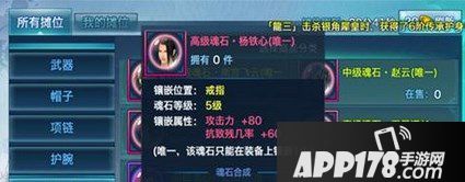 高级魂石·杨铁心(唯一),魂石等级:粉色5级,攻击力80、抗致残几率60。