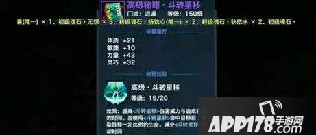 秘籍效果:提高斗转星移伤害威力与造成致残的时间,当使用斗转星移命中目标后,吸取目标一定比例的生命,减少斗转星移冷却时间。
