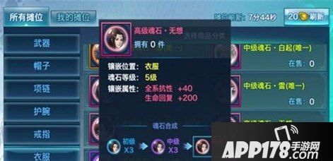 魂石的搭配,每个人都有自己的看法,上面推荐仅做参考,其次跟各位少侠们分析衣服部位的魂石。