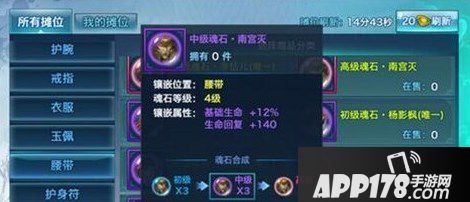 南宫灭镶嵌后增加基础生命百分比和生命回复。和曲霞魂石属性一模一样。初级品质为蓝色,最高可以升到粉色