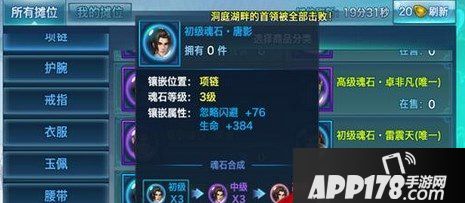 初级魂石·唐影,魂石等级:蓝色3级,忽视闪避+76、生命+384。