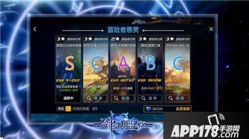 “悬赏系统”指的是每天可以选择完成的固定悬赏任务。玩家到达10级就能开启,一般来说,每天完成5个。但当玩家完成冒险者升阶后,可额外获得5次悬赏。悬赏任务按照品质分为S、A、B、C、D,品质越高经验越多,想要完成更多S级任务,就可以通过消耗悬赏令或钻石来刷新品质,不限次数。