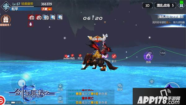 伴随“魔王降临”,拥有深厚魔幻故事背景底蕴的“剑魔”大陆,开辟了一片极具生存挑战的新竞技场地:混乱战场。混乱战场天气阴晴不定,时而天气晴朗时而暴雪来袭,游戏通过动态实时光源和软阴影技术,将场景效果完美呈现于屏幕之中,当暴风雪来袭之时,你仿佛置身其中,在酷热的中午也会觉得格外凉爽!