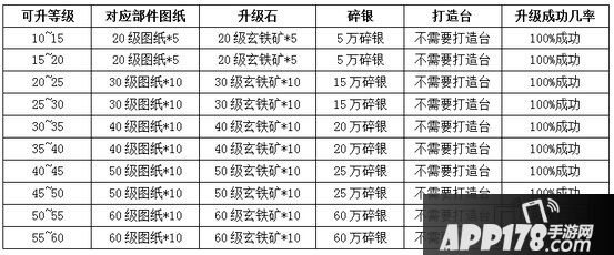 4)玉品质无论散装还是套装,在任何等级升级时都需要额外消耗数量不等的打造台道具。