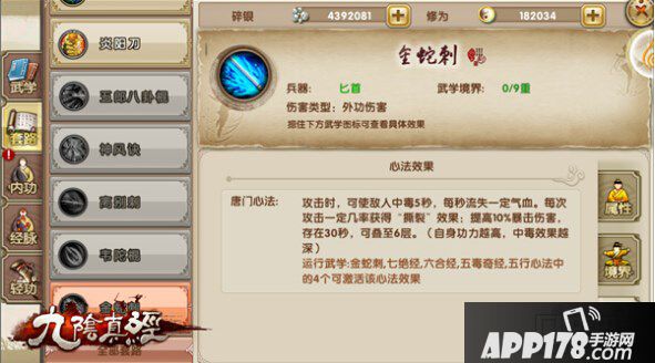 以上就是APP178手游小编为您带来的唐门内修路《九阴真经》手游三心法毕业教程。更多精彩内容请继续关注APP178手游九阴真经手游专区。