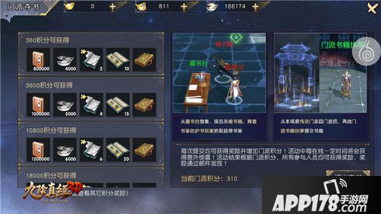 玩家每次提交夺书任务时均可获得奖励和增加门派积分,在夺书活动中每在线一定时间还会额外活动奖励。在活动结束后通过玩家夺书时获得的门派积分,可以让玩家获得大量经验、银子、残卷、参悟点等物品,大大提升玩家的实力。