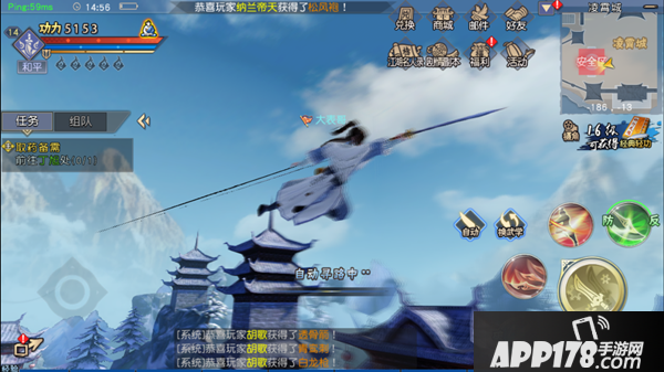 1、当处于非战斗状态可以在寻路的时候自动使用御风轻功,每次使用御风轻功都将扣除道具御风神水一瓶
