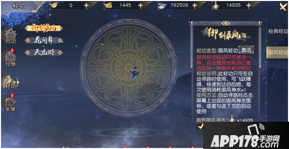 2、每种御风轻功都有不同的表现动作以及效果。游戏中目前有3种御风轻功,可以在游戏中的修炼-轻功界面进行查看